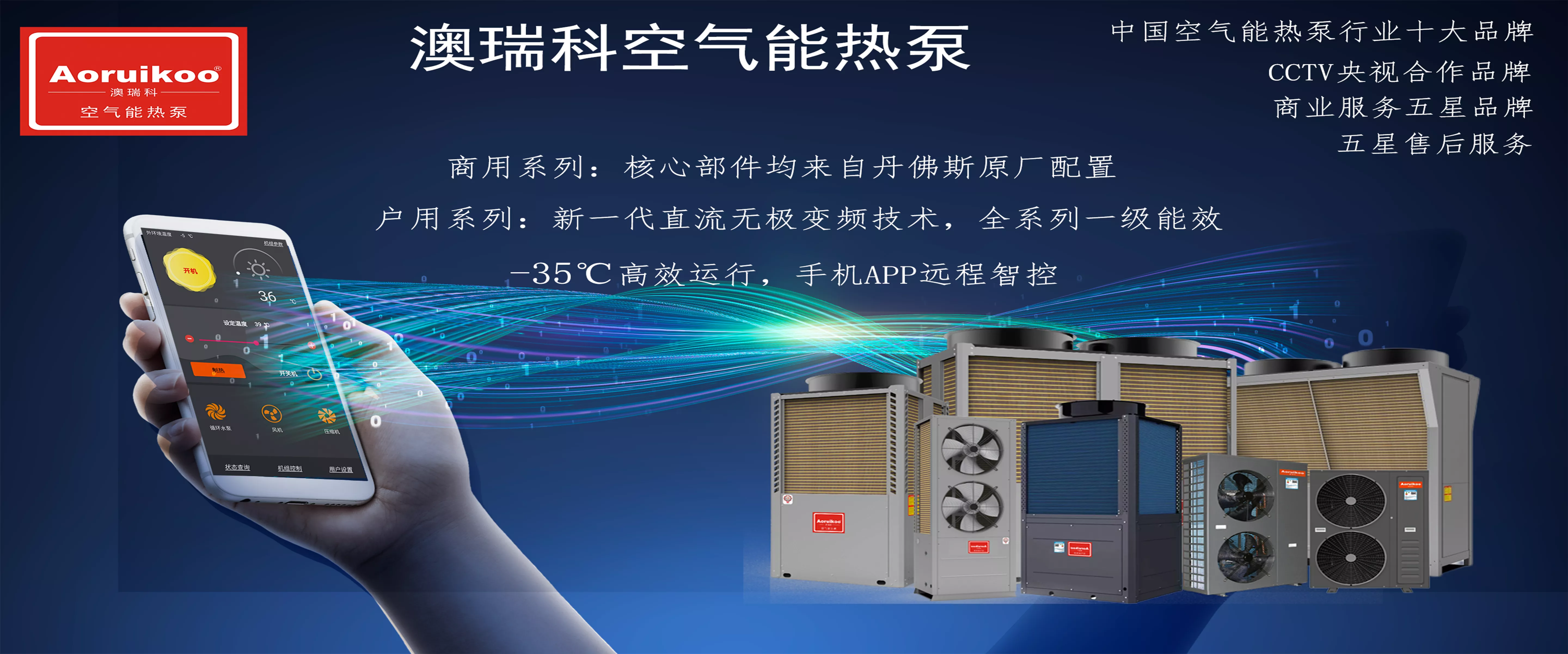 公司旗下品牌“Aoruikoo”主营丹佛斯全套配置商用双增焓高效超低温商用热泵机组、户用全直流变频一级能效机组、超低温空气能热水机组,遵循国际质量标准及国家行业标准,秉承高配置高能效质量发展方向,已通过ISO三大体系认证,CQC检测认证,3C强制认证。澳瑞科公司多年专注北方高寒低温采暖技术与现场经验结合,在-35℃极寒工况仍然稳定运行制热,为推动环保和清洁能源的发展,成为热泵行业解决“环境和能源”全配置综合应用清洁能源节能方案的企业。